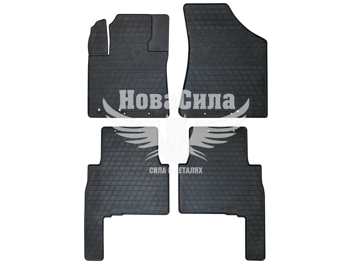 - Високоякісний матеріал: виготовлені з міцної і стійкої резини, яка не тільки захищає салон від зносу, але і легко миється та очищається від будь-яких забруднень.