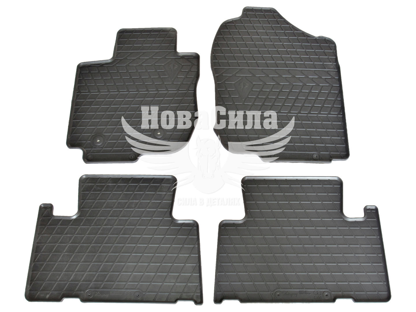 - Високоякісний матеріал: виготовлені з міцної і стійкої резини, яка не тільки захищає салон від зносу, але і легко миється та очищається від будь-яких забруднень.
