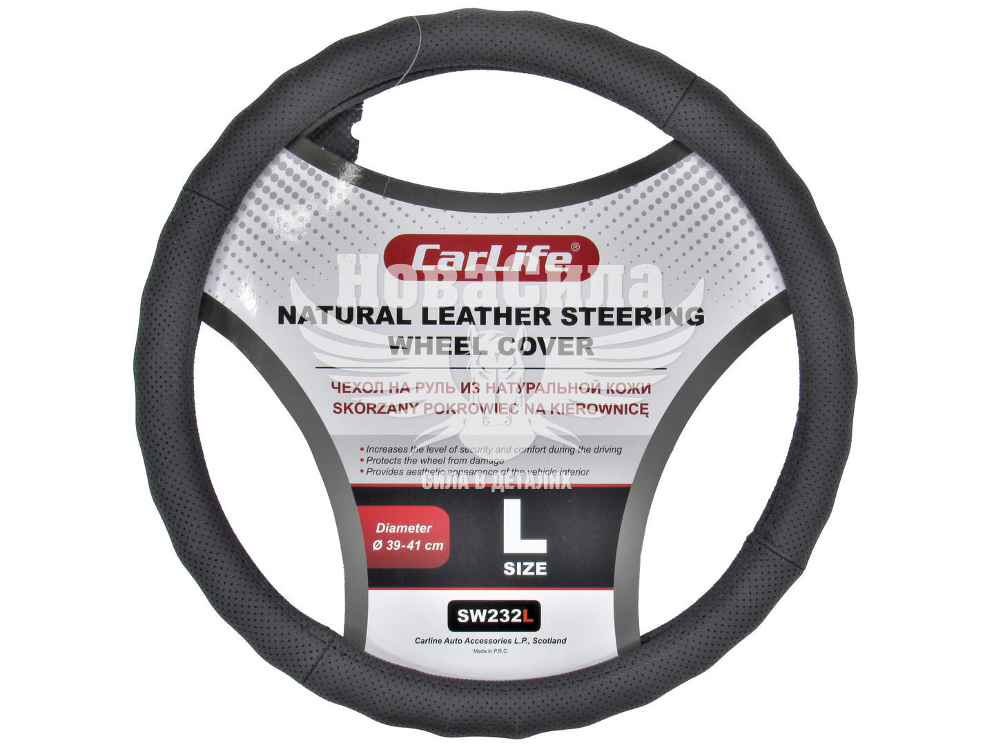 Особливості чохла на кермо CARLIFE L (39-41см) чорний SW232L: