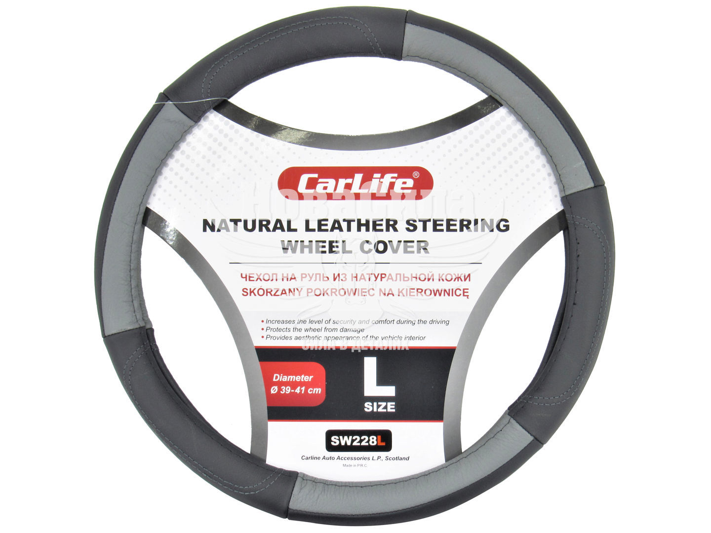 Чохол на руль CARLIFE L (39-41см) чорний + сіра вставка SW228L - це передова розробка в сфері виробництва чохлів на кермо автомобіля. В даному чохлі CARLIFE L (39-41см) чорний + сіра вставка SW228L використовується виключно високоякісна натуральна шкіра. Це дозволяє вам пересуватися максимально комфортно в будь-який час року. У літню пору руки не потіють і не ковзають по керму. А взимку ви не відчуваєте дискомфорту від контакту з холодним кермом.