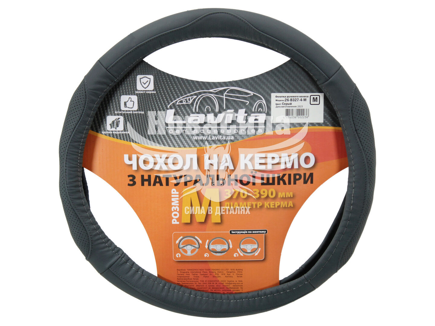 Чохол руля M з натуральної шкіри в сірому кольорі від Lavita (код товару LA 26-B327-4-M) - це елегантний та функціональний аксесуар, який додасть комфорту та стилю до вашого автомобіля.