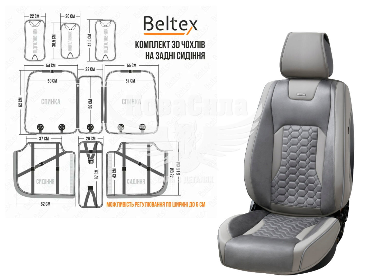 Чохли на сидіння (Beltex) 3D перед.+зад. Montana (к-т.-4шт.) сірі