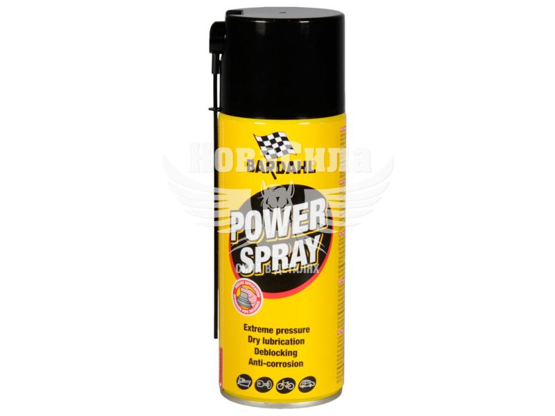 Універсальне сухе мастило, призначене для комплексного догляду за різними механізмами та вузлами – відновлює рухливість заржавілих механізмів, змащує їх та захищає від ураження іржею. Також, засіб відрізняється чудовими очищаючими властивостями та ефективно видаляє різні масляні та жирові забруднення, плями бітуму та інші складні забруднення. Завдяки відмінним проникаючим властивостям мастило Bardahl POWER SPRAY 3271 400мл видаляє іржу та вологу, перешкоджаючи повторній появі корозії та окисленню оброблених елементів, може використовуватися для різних електроконтактів, зокрема – клем акумуляторів. Універсально підходить для використання в автомобілі, побуті та виробництві для різних механізмів, не містить агресивних інгредієнтів і є безпечним для ущільнювачів, елементів з гуми, пластмас, дерева, а також лакофарбового покриття та хромованих поверхонь.