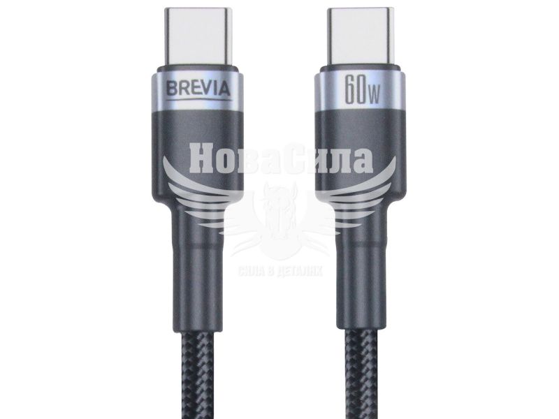 Кабель для зарядки моб. телеф. Type-C to Type-C (Brevia) 1м. чорний, 60W, Box (53100)