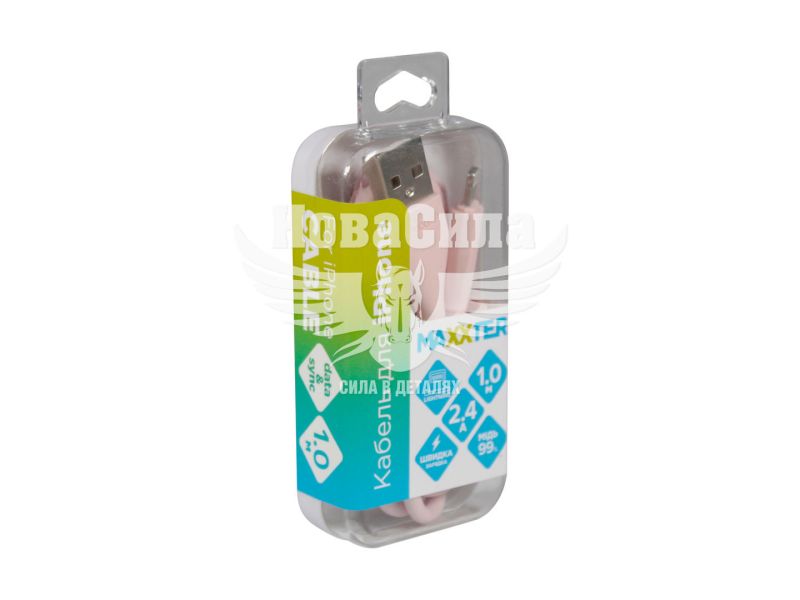 Кабель для зарядки моб. телеф. USB 1м. розовий (Maxxter) (Iphone Lightning)