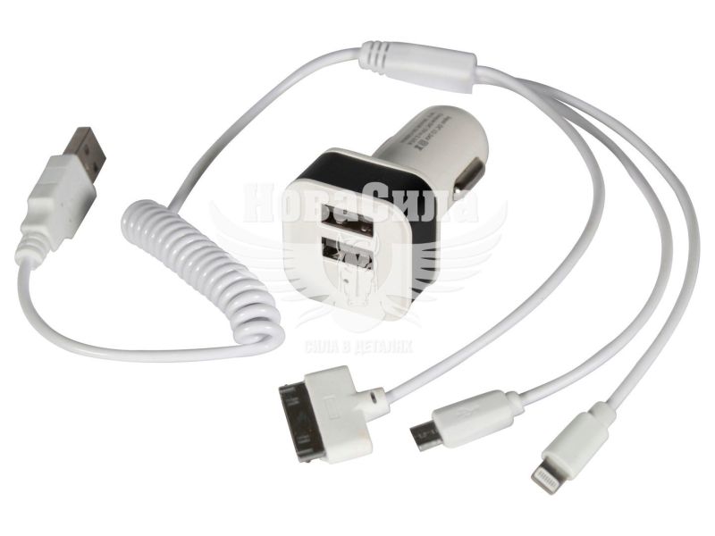 Зарядне для портативних пристроїв 12-24V (Vortex) 2USB-A 2100mA з кабелем