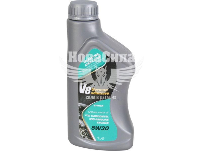 Синтетичне легкотекуче моторне масло V8 5W30 SYNTEX SM/CF високого класу для бензинових двигунах, в тому числі з турбонаддувом. Для всесезонного застосування.