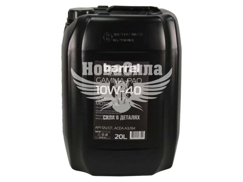 Моторна олива бензин, дизель 10W40 BARREL Gamma-Pao 20 літрів — це напівсинтетичний мастильний матеріал, призначений для сучасних бензинових і дизельних двигунів легкових автомобілів та легкого комерційного транспорту. Олива створена із застосуванням технології PAO, що забезпечує стабільні мастильні властивості, ефективний захист двигуна та надійну роботу в умовах підвищених навантажень. Підходить для двигунів із турбонаддувом і гарантує стабільну експлуатацію у широкому температурному діапазоні.