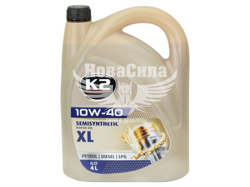 Моторна олива бензин, дизель 10W-40 (K2) XL SL/CF 4л. - сучасна напівсинтетична олія для двигунів, розроблена та вироблена при використанні новітньої технології NANOTECH. Спеціальні молекули добавок, що зменшують тертя, чудово захищають дигатель від зношування. Рекомендується для легкових автомобілів та вантажних автомобілів, що використовують бензин, дизельне паливо, а також газ незалежно від ступеня зносу дигача. Відповідає вимогам API SL/CF.