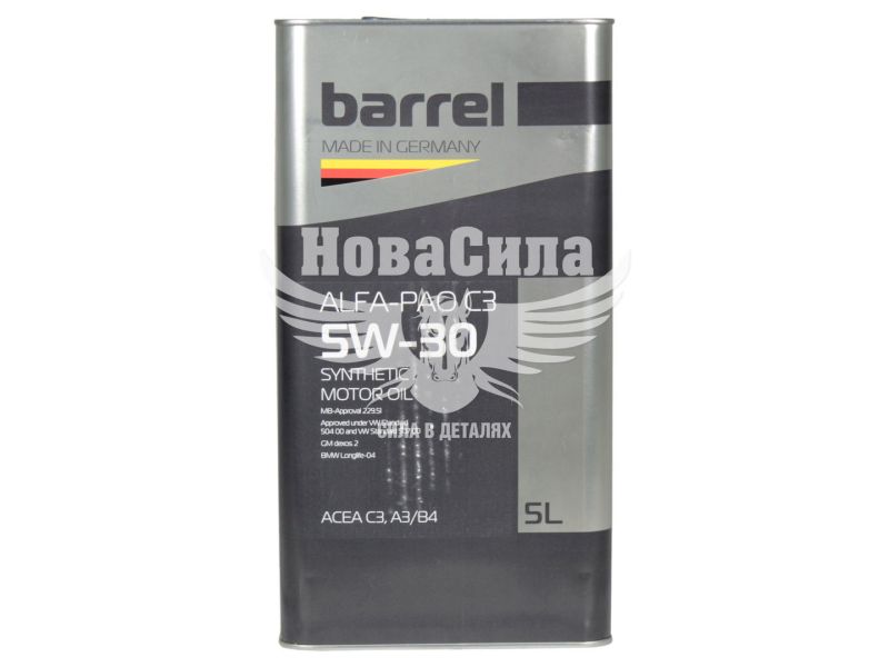 Моторна олива бензин, дизель 5W30 BARREL C3 Alfa-Pao 5 літрів — це повністю синтетичний мастильний матеріал, призначений для сучасних бензинових і дизельних двигунів легкових автомобілів. Олива створена із застосуванням технології Low SAPS, що забезпечує низький вміст сульфатної золи, сірки та фосфору, а також сумісність із системами очищення вихлопних газів, включаючи сажеві фільтри DPF і каталізатори TWC. Відповідає вимогам ACEA C3 та стандартам Євро-5, забезпечуючи стабільну роботу двигуна при різних режимах експлуатації.