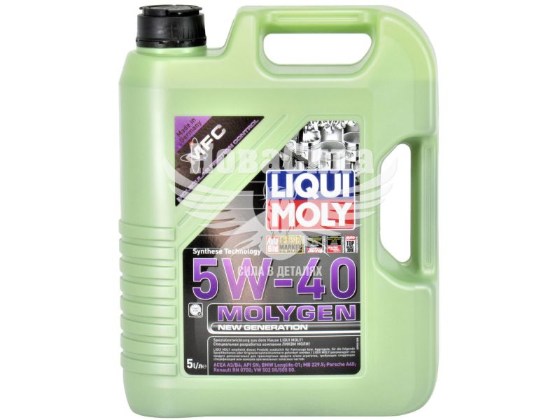 Високопродуктивне моторне масло легкого ходу для всесезонного застосування. Нестандартні базові масла, найсучасніші присадки і спеціальний компонент Моліген дозволили отримати низковязкую високостабільного моторне масло, ефективно запобігає відкладення, знижує втрати на тертя і оптимально захищає від зносу. Ці властивості дозволяють економити паливо і одночасно збільшити ресурс двигуна. LIQUI MOLY MOLYGEN NEW GENERATION SAE 5W-40 рекомендується для бензинових і дизельних двигунів, включаючи обладнані турбонагнітачем і каталізатором, забезпечує інтервали заміни до 40 000 км (в залежності від вимог виробників.