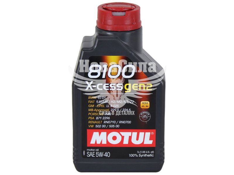 Motul 8100 X-CESS GEN2 5W-40 368201 1л - синтетична моторна олія, для сучасних автомобілів з бензиновими та дизельними двигунами, в т.ч. з прямим упорскуванням або каталітичним конвертером, а також газобалонним обладнанням LPG. Збільшує потужність, зменшує зношування, покращує довговічність двигуна.