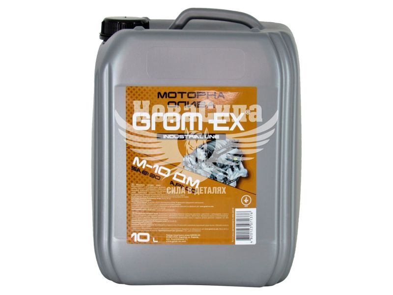 Grom-Ex М10ДМ - моторне масло на мінеральній основі призначене для високофорсованих дизельних двигунів і моторів з турбонаддувом, для вантажних автомобілів, сільськогосподарської та будівельної техніки, яка працює в складних умовах.