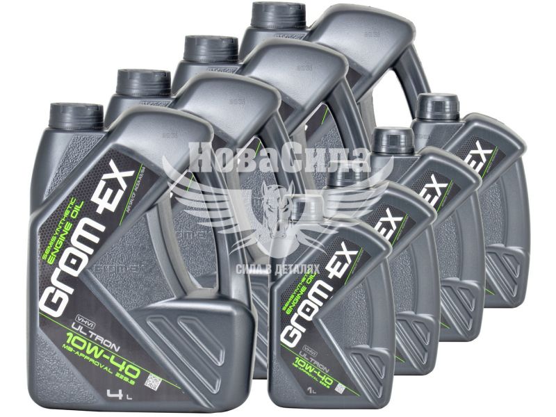 Grom-Ex Ultron 10W-40 SN / CF - високоякісне всесезонне напівсинтетичне моторне масло, виготовлене на базовому маслі всесвітньо відомого виробника Chevron. Призначено для сучасних високофорсованих бензинових і дизельних двигунів легкових автомобілів, мікроавтобусів і легких вантажівок. Унікальні власні технології, часто перевершують європейські аналоги, забезпечують повний захист двигуна, активуючи відповідні компоненти при різних умовах роботи.
