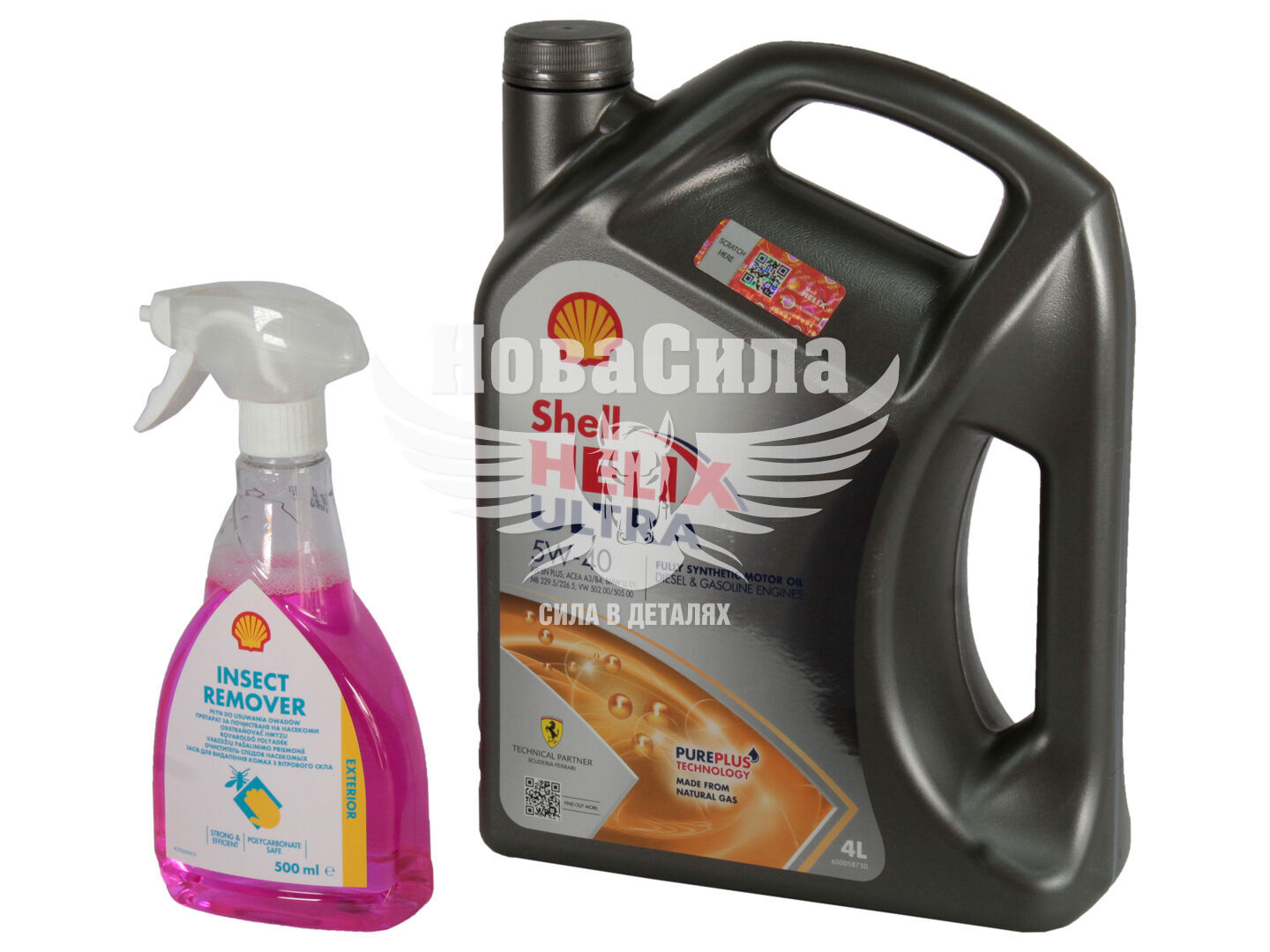 Промонабір (Shell) моторна олива бензин, дизель 5W-40 (Shell) Helix Ultra 4л.+засіб для видалення комах 0,5л