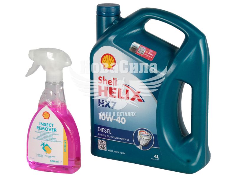 Промонабір (Shell) моторна олива дизель 10W-40 Helix HX7 Diesel 4л.+ засіб для видалення комах 0,5л