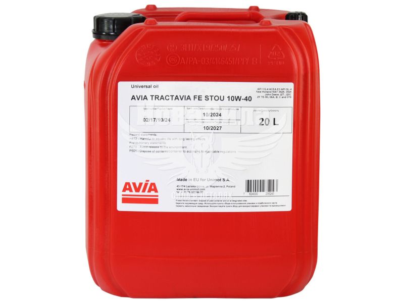 Універсальна олива AVIA TRACTAVIA FE STOU 10W-40, 20 л — це високоефективний мастильний матеріал, розроблений для надійного захисту та оптимальної роботи двигунів сільськогосподарської техніки, спецтехніки та комерційних транспортних засобів. Відповідно до стандартів API CG-4, ACEA E3, API GL-4, New Holland MAT 3525, 3526, John Deere J27, J20C та ZF TE-ML 06A, 06B, 06C, 07B, ця олива забезпечує стабільну продуктивність у найскладніших умовах. Виготовлена в ЄС компанією Unimot S.A. вона гарантує довговічність і збереження своїх характеристик протягом усього строку використання.