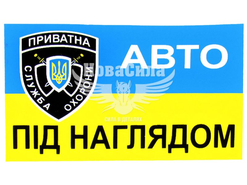 Наклейка авто під наглядом (прямокутник синьо-жовте тло) (мал.) 8х5