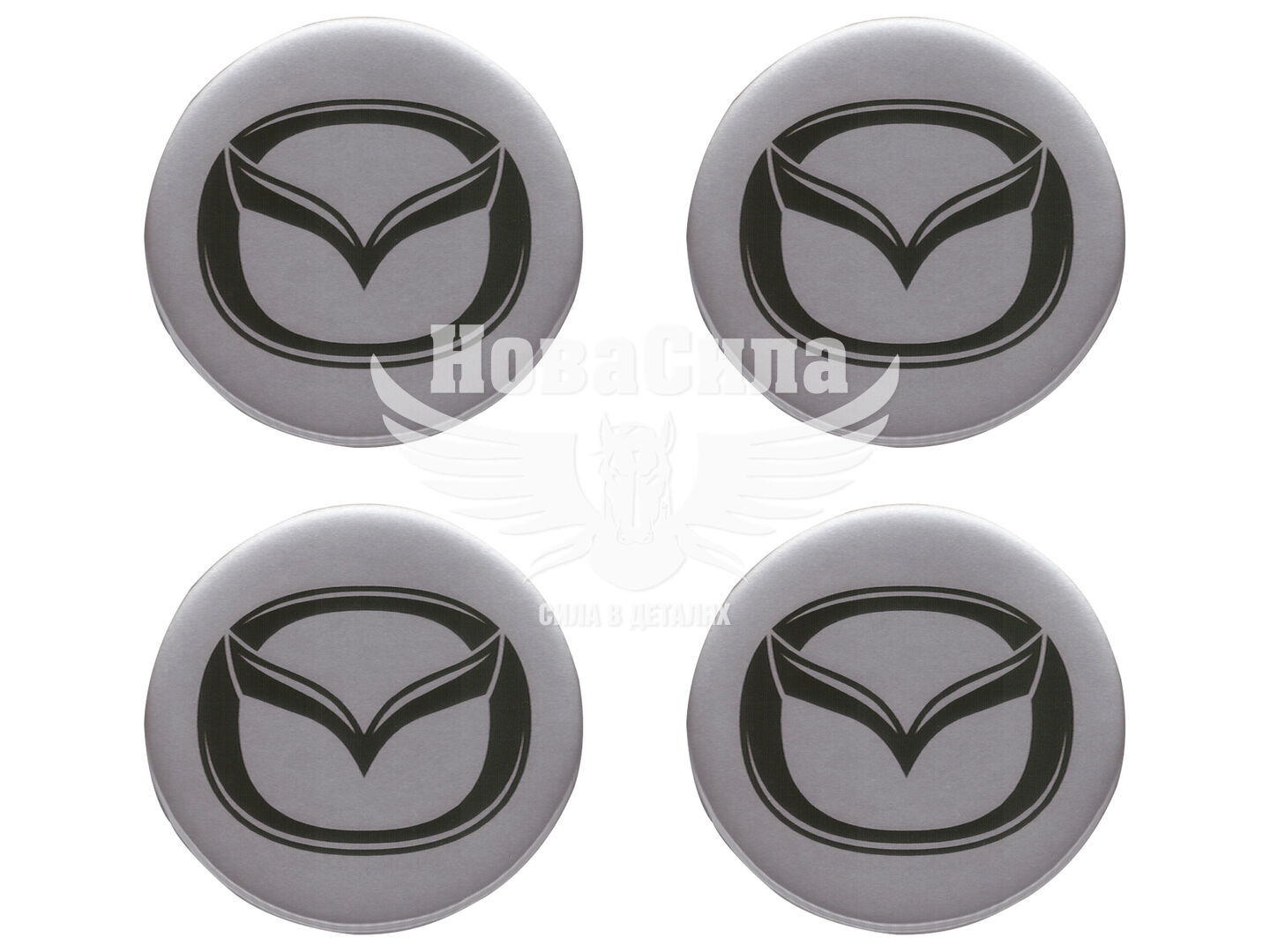 Наклейка Mazda на колпаки (силикон) серебряная диам. 5х5