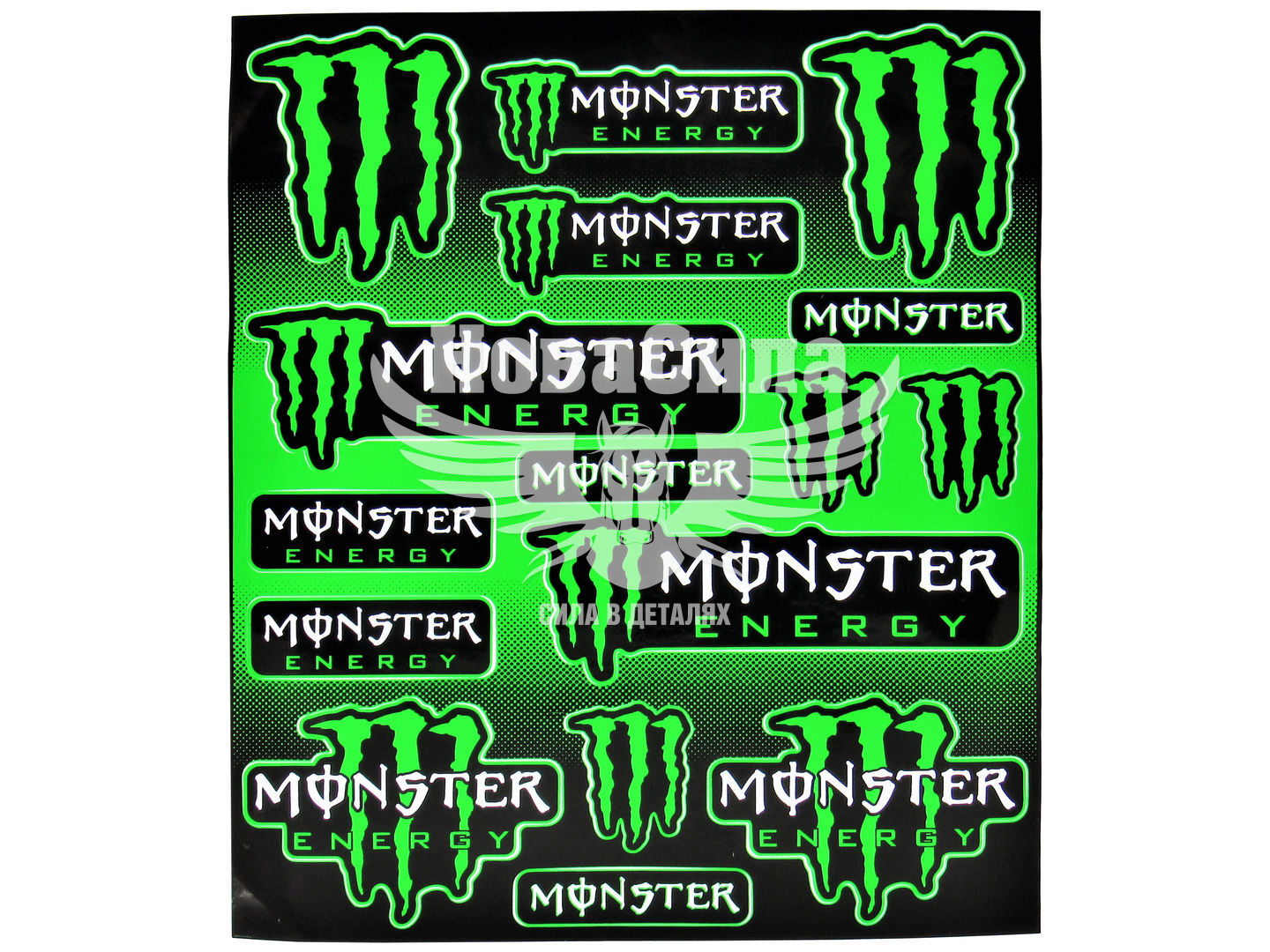 Наклейка (планшет) для мото Monster кт.-16шт. 29х24,5 зелена