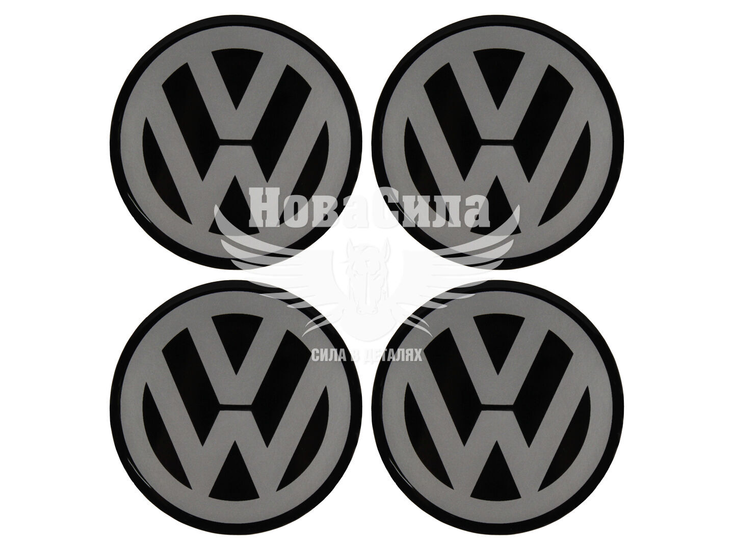 Наклейка VW на ковпаки (силікон) срібна діам. 7