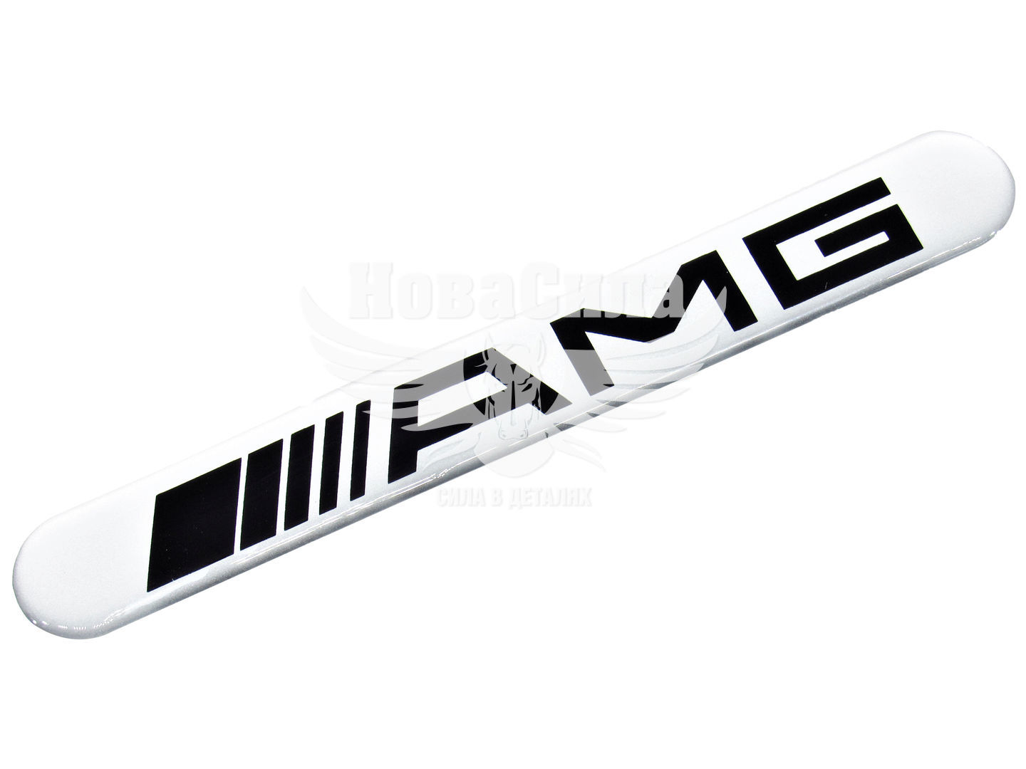 Наклейка з написом AMG (срібне тло) (силікон) 14х1,8