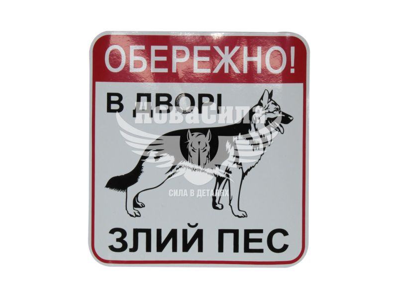 Наклейка з написом Обережно (в дворі злий пес) 15,5х14,5