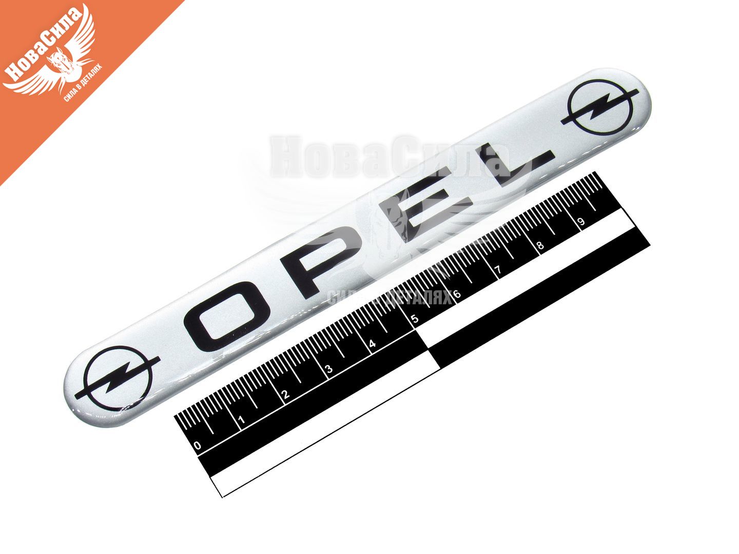 Наклейка з написом OPEL (срібне тло) (силікон) 14х1,8