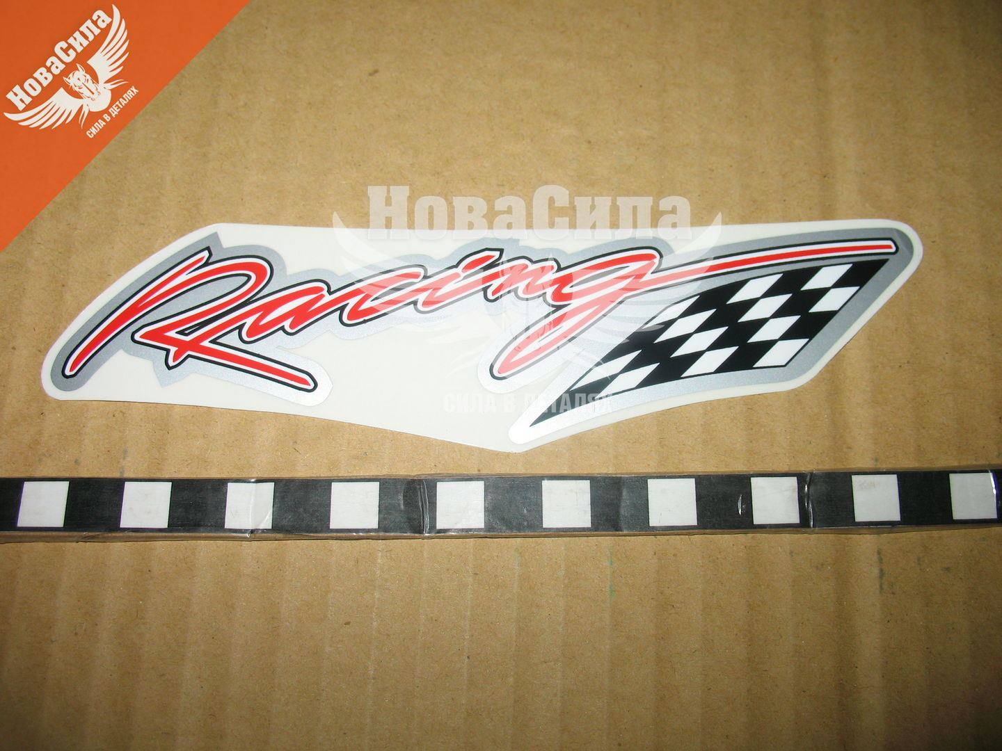 Наклейка з написом RACING (з боку шашка) 18х3,5