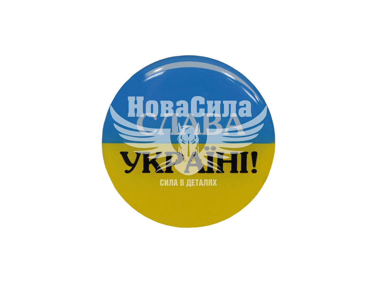 Наклейка з написом Слава Україні (круг синьо-жовте тло) (силікон) діам. 5,5