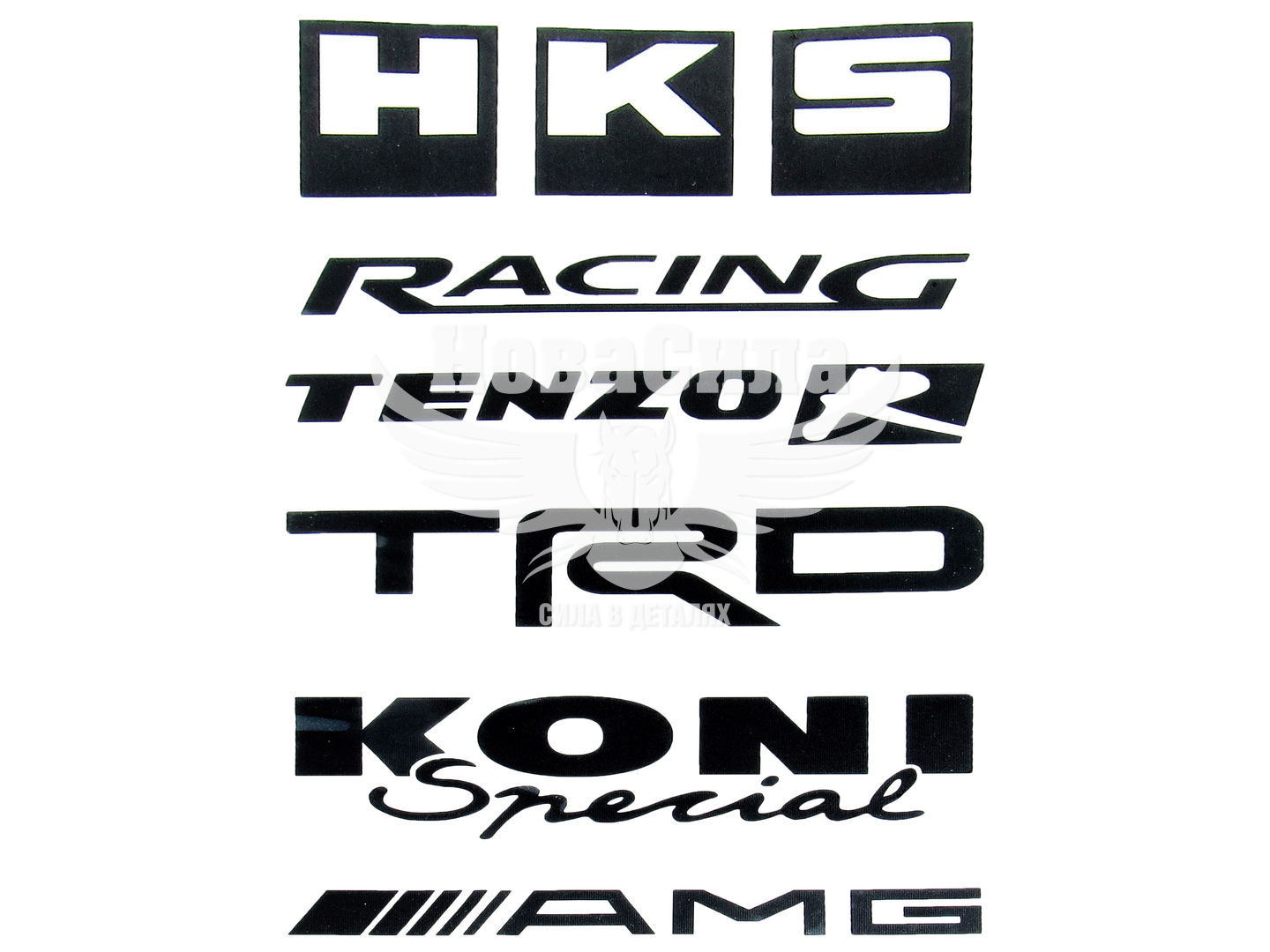 Наклейка з написом в ряд (HKS, RACING, TEZOR, TRD, KONI, AMG) (чорн.) 28х14