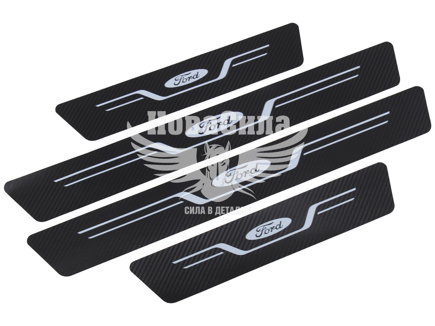 Наклейки на пороги карбон Ford кт. 4шт. 55х7 передні, 35х7 задні (New)