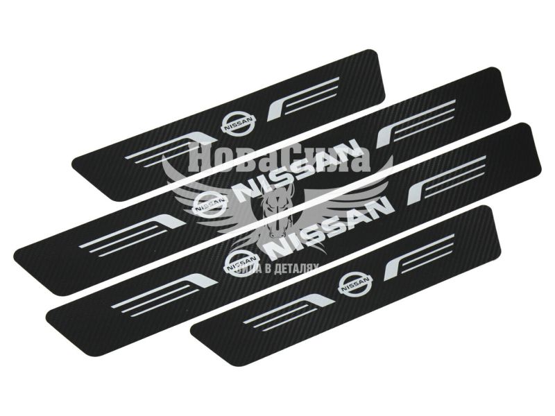 Наклейки на пороги карбон Nissan кт. 4шт. 55х7 передні, 35х7 задні