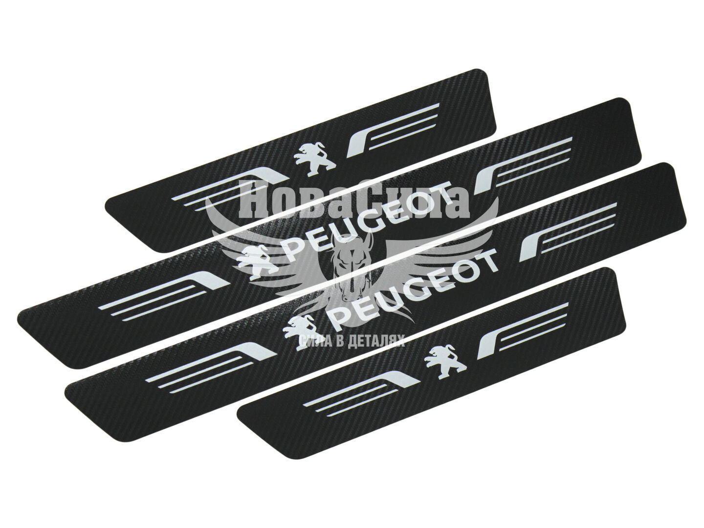 Наклейки на пороги карбон Peugeot кт. 4шт. 55х7 передні, 35х7 задні