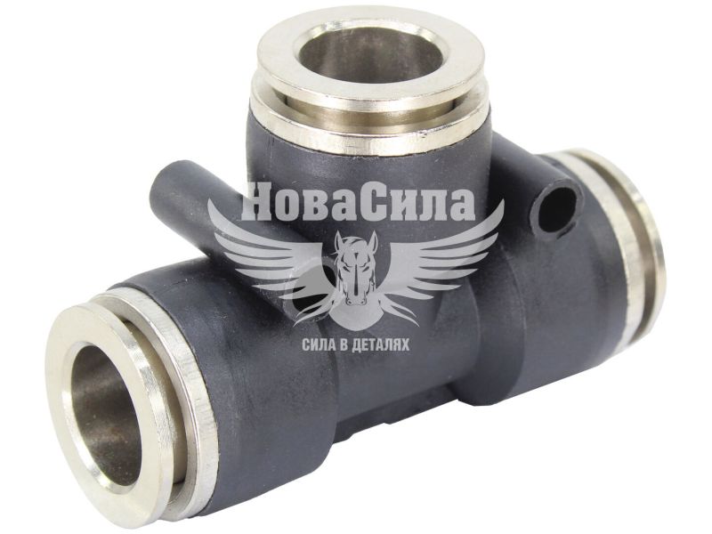 З'єднувач аварійний трубки ПВХ трійник пластик+метал 12х12х12мм. (Rider)