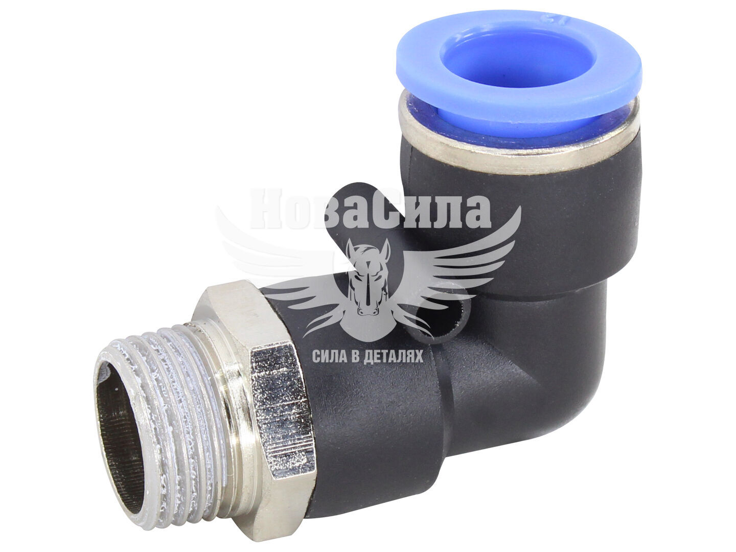 З'єднувач трубки ПВХ з зовн. різьбою Г-подібний пластик 3/8х12мм. (Airkraft)