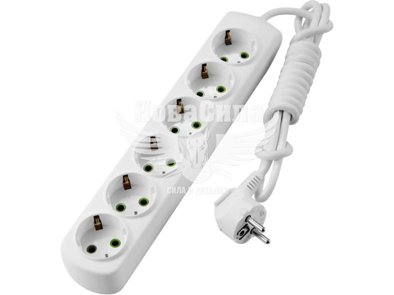 Подовжувач виконаний у форматі колодки на шість гнізд стандарту CEE 7/17 із захисним заземленням, що підвищує рівень електробезпеки під час підключення техніки. Кабель з перерізом 3х1 мм2 розрахований на допустиме навантаження до 3,5 кВт і забезпечує стабільну передачу електроенергії без перегріву. Відсутність кнопки вимкнення робить конструкцію простою, надійною та придатною для тривалої експлуатації. Ступінь пиловологозахисту IP20 передбачає використання виробу виключно у сухих приміщеннях.