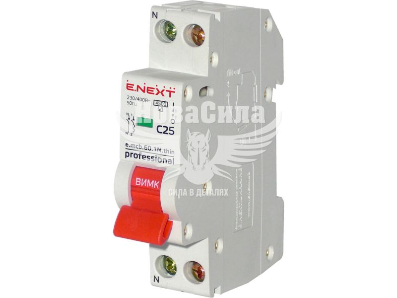 Автоматичний вимикач E.NEXT e.mcb.pro.60.1N.С25.thin 1р+N C25A 4,5kA 1М