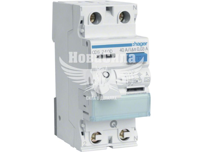 Hager Пристрій захисного відключення (ПЗВ) QC 2P 40A 6кА 30mA Тип A