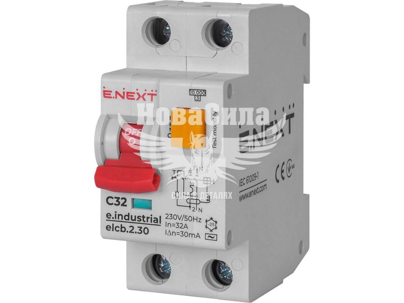 E.NEXT Вимикач диференційного струму (дифавтомат) e.industrial.elcb.2.C32.30, 2р, 32А, С, 30мА