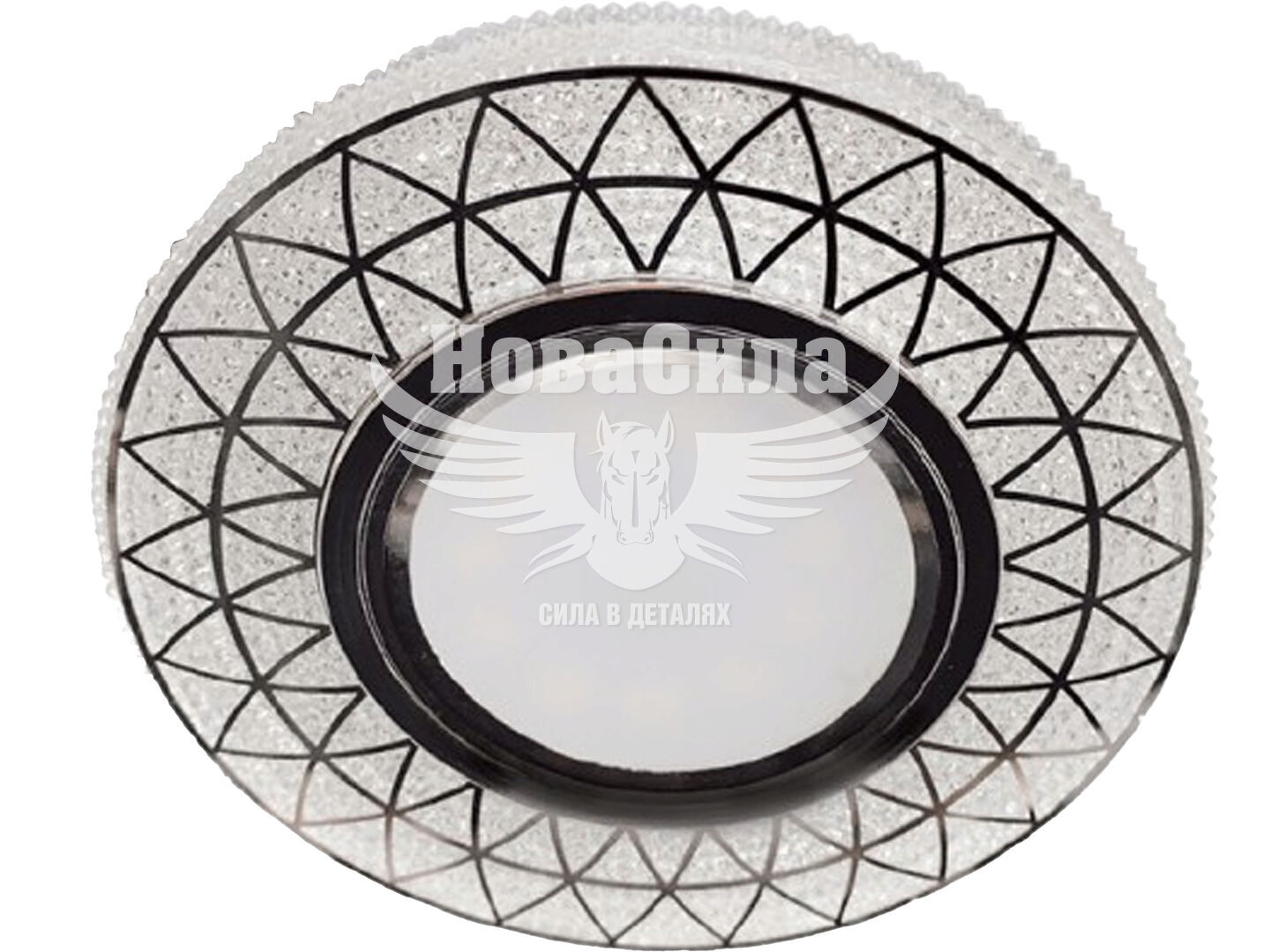 Вбудований світильник Feron CD832 (модель 40025) — це декоративний світильник із вбудованою підсвіткою, призначений для стельового монтажу. Особливістю моделі є прозорий корпус із кристалічною структурою та декоративною металевою накладкою, що створює абстрактний візерунок. Підсвічування підкреслює візуальний ефект, імітуючи блиск коштовного каміння.