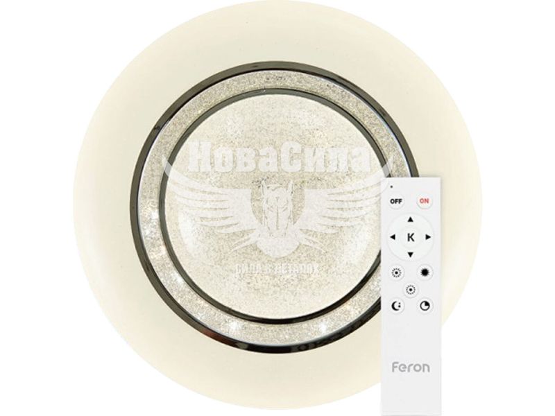 Світлодіодний накладний світильник Feron AL6010 SIRIUS 72 Вт (модель 40142) — це SMART-рішення для сучасного інтер’єру з можливістю дистанційного керування. Модель вирізняється декоративним отвором із прозорим покриттям та стразами, що створюють ефект коштовного мерехтіння у ввімкненому стані.
