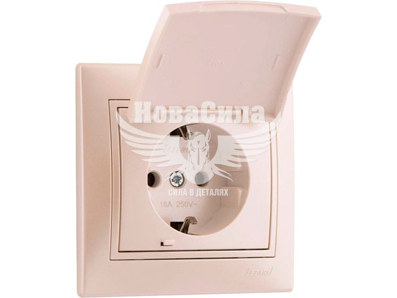 LEZARD MIRA Розетка одинарна з/з з кришкою, перлинно білий