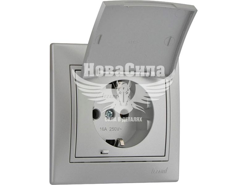 LEZARD MIRA Розетка одинарна з/з з кришкою, сірий металік