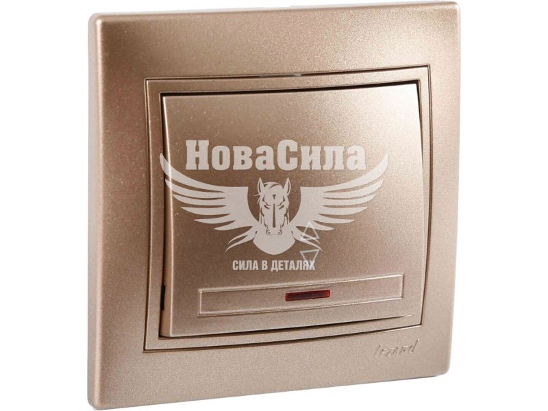 LEZARD MIRA Вимикач прохідний одинарний з підсвіткою, світло-коричневий перламутр