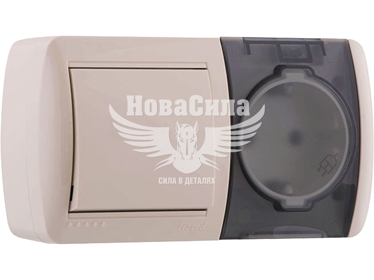 LEZARD NATA Вимикач одинарний і розетка з/з з кришкою (горизонталь), крем