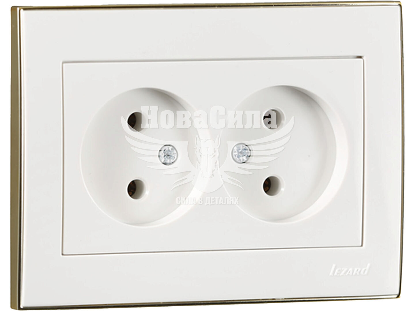 LEZARD RAIN Розетка подвійна б/з, білий з боковою вставкою золото