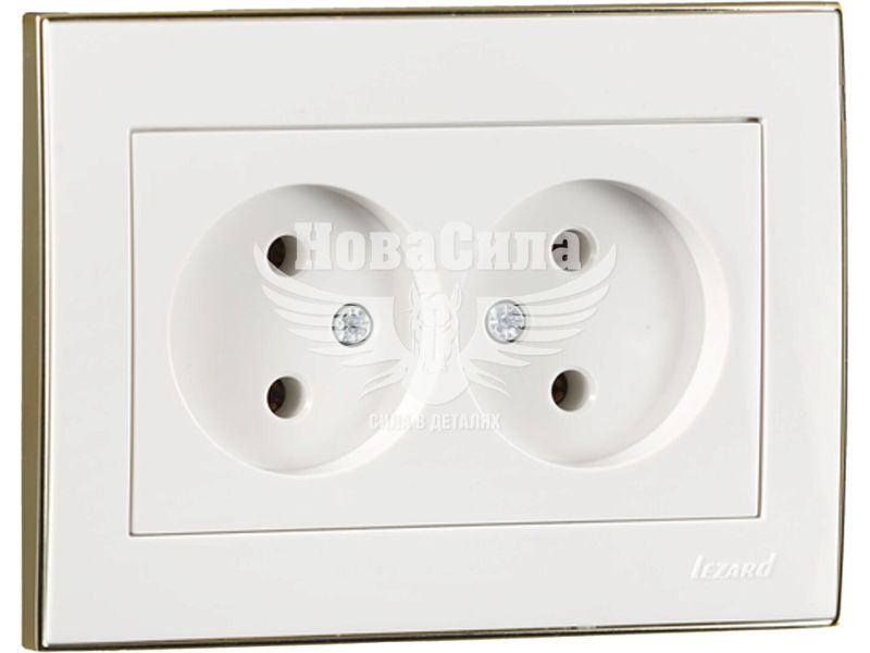 LEZARD RAIN Розетка подвійна без заземлення, білий з боковою вставкою золото, без рамки 703-0226-128 — стильне рішення для інтер’єрів, де важлива естетика та функціональність. Подвійна розетка дозволяє одночасно підключати два електроприлади, забезпечуючи комфорт у використанні.