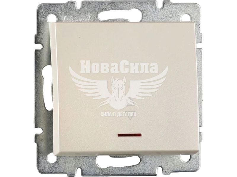 LEZARD RAIN Вимикач прохідний одинарний з підсвіткою, перлинно-білий перламутр, без рамки