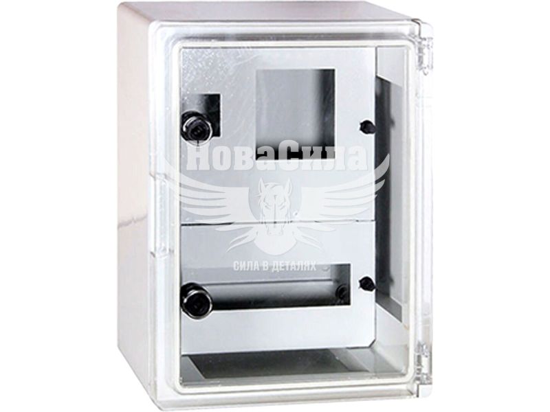 E.NEXT Корпус удароміцний з АБС-пластика e.plbox.250.330.130.1f.2m.tr, 250х330х130мм, IP65 з прозорими дверцятами, панеллю під 1 - фазний лічильник та 2 модулі